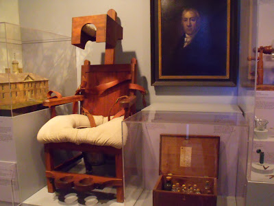 the mental patient's "living quarters room" --there were voices sounding like a patient conversing with a doctor and others, begging and pleading to be released. Quite distressing but very interesting as I do have a career in the medical field and to see how far technology and care has advanced is very relieving. The photos above were the doc's quarters.